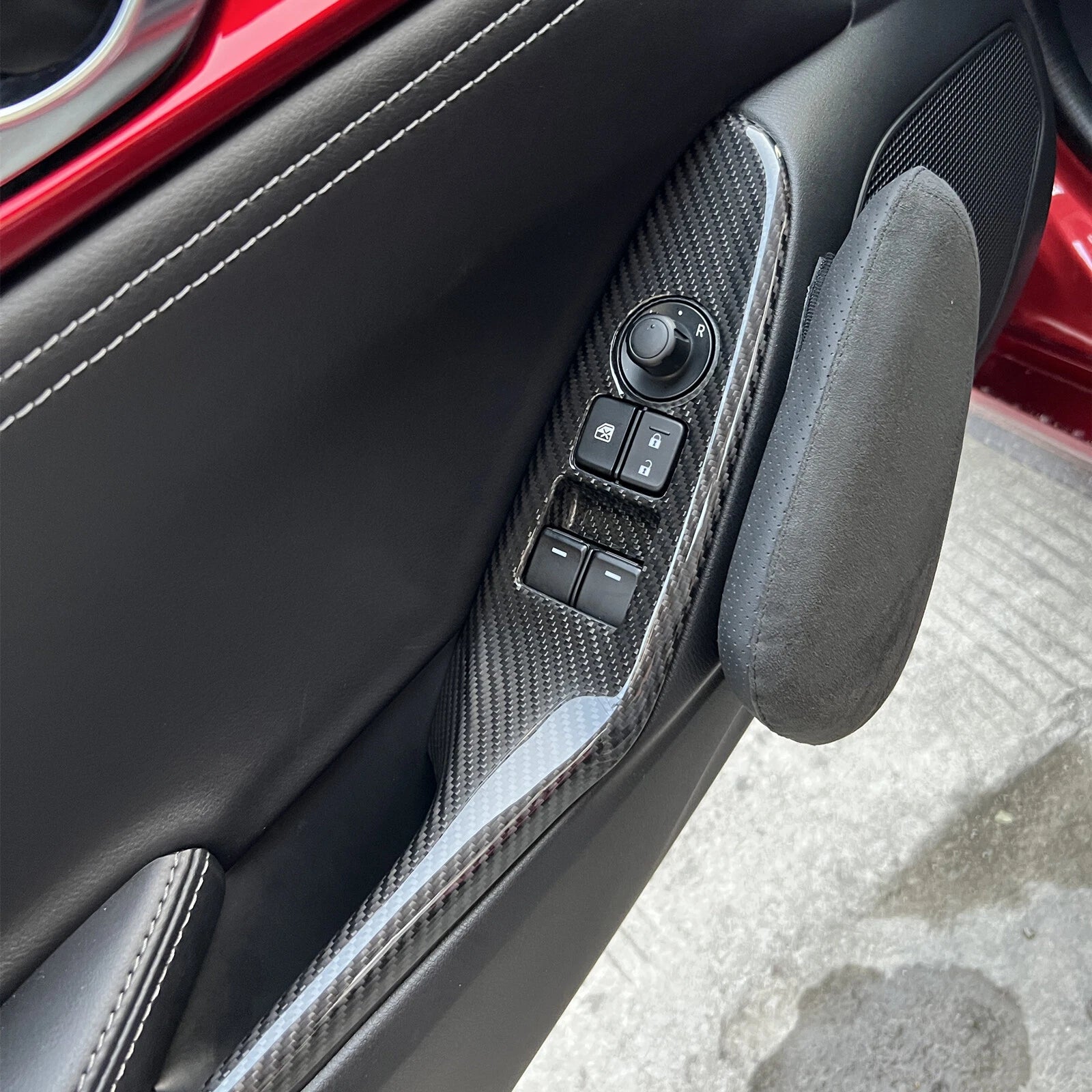 Elevate the interior aesthetics of your Mazda MX-5 Miata with our premium Carbon Fiber Window Lift Trim Covers. Designed specifically for model years 2016 to 2024, these trim covers seamlessly integrate with your vehicle's existing design, enhancing its sporty appeal. Crafted from high-quality carbon fiber, they not only provide a sleek look but also offer durability and resistance to wear. Installation is straightforward with included hardware, ensuring a perfect fit for all submodels.